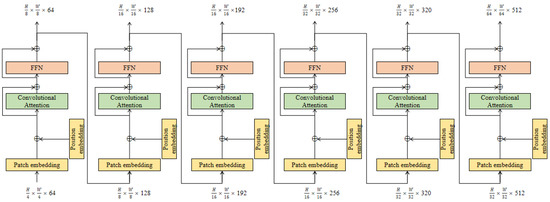 We follow the overall structure of the traditional visual transformer, which contains patch embedding, position embedding, an attention block, and a feedforward network. However, unlike VIT [12], as shown in Figure 3, a convolutional attention block [34] instead of a multiheaded self-attention block is used in this study to construct a new convolutional attention transformer, whose internal details are shown in Figure 4.