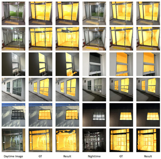 Since the GDD dataset does not contain test data for lighting conditions, we took photos of glass doors at the same location during the day and night as a small light condition experiment. Figure 10 shows that our method works well for glass segmentation both in the daytime and nighttime, where we made the ground truth manually.