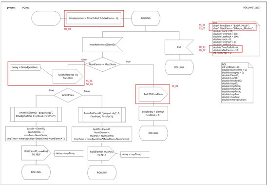 Now we are going to show how we will apply this to a real case: see [58]. The project was developed for a real industry that wants to optimize the behavior of a specific area of a production plant. Specifically, we want to perform a detailed simulation of the conveyor that moves some material from one point to another point of the factory. Note that this is not a short conveyor, and its behavior is critical for the good performance of the factory; since it is composed of several sections, it is a complex element that must be accurately represented. We want to configure the conveyor behavior, speed, and capacity to properly configure the machines located at the beginning and the end of the conveyor. The conveyor is connected with other elements, specifically in this example, with a machine named ADP, which provides the input material that the conveyor transports to a robot that will process them to other areas in the factory.