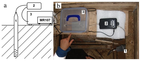 - Gorbushina, L.V. Emanation method of indication of geodynamic processes in engineering-geological surveys. Sov. Geol. 1975, 4, 48–50. (In Russian) [Google Scholar] [CrossRef]