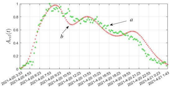 Here, in the model Equation (10), a term with quadratic nonlinearity and coefficient appears. We will assume that this term is responsible for the RVA sink due to atmospheric pressure, i.e., due to weather conditions. In addition, the model Equation (10) will be called the fractional Riccati equation.