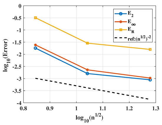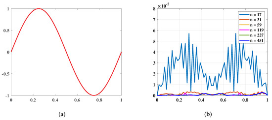 where is the collocation matrix, and denotes the load vector. Finally, solving the system of Equation (5), we obtain the control coefficients and further achieve the numerical solution by substituting the control coefficients into Equation (3).