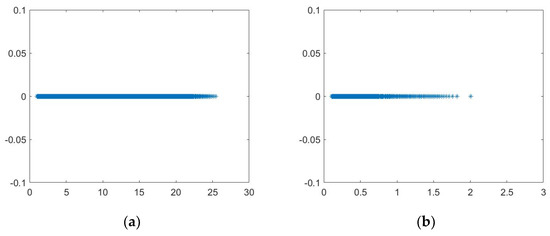 According to Theorem 2, the eigenvalues of the FMDTS preconditioned matrix gather near the eigenvalues of matrix . Further, according to Theorem 1, under the condition of MDTS iteration method convergence, the eigenvalues of the matrix are clustered on the complex disk with 1 as the center and as the radius.