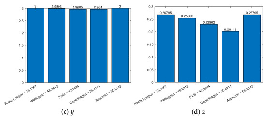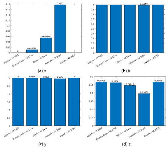 where represents the length of the trajectory of the sun for the i-th month. Figure 6, Figure 7 and Figure 8 represent the weighted average values of the south meridian altitude in selected regions and those of parameters .