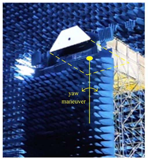 Another problem is the APC change during an on-orbit calibration maneuver. The antenna is specially manufactured using thermal-stable materials of invar, and the precise APC position in the antenna frame is calculated using Equations (11) and (12) below, in theory: