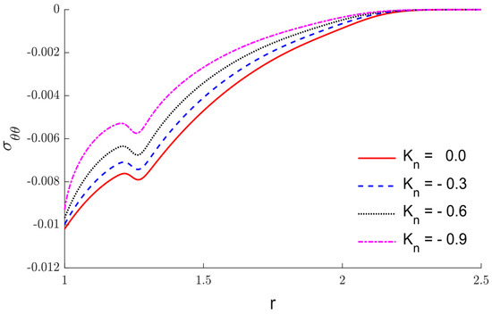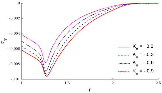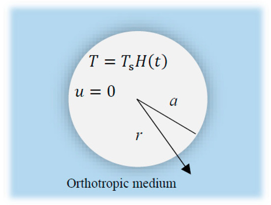 where and are constants that can be calculated from the boundary condition of the problem, and are the modified of Bessel’s functions with order and respectively. It is possible to use the Stehfest [56] method as a numerical inversion technique in order to obtain the final solutions of temperature, displacement and stresses distributions.