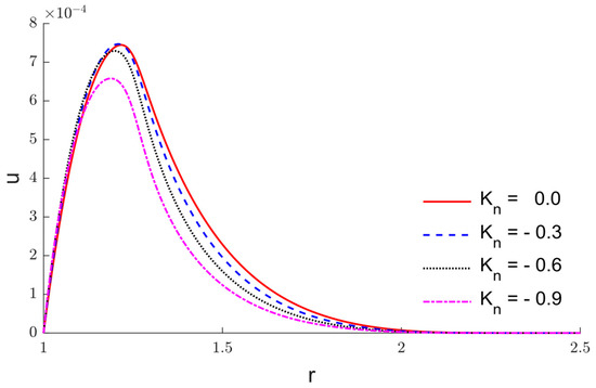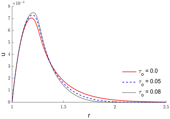 The impacts of thermal relaxation time in the variation of radial displacement when .