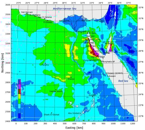 - Examine the effect of the RES connection on the performance of the 500 kV Egyptian Power system, taking into account weather data for solar radiation and wind speed. This data was obtained from the NASA website for the period 1 January 2021 to 31 December 2021.