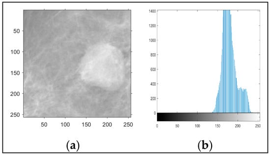 Mammography images are known to be low contrast, which can lead to unsatisfactory segmentation results. Given a grayscale mammography image, its histogram consists of its intensity value, which is a graph indicating the number of times each intensity value occurs in the image. We can deduce a great deal about the appearance of an image from its histogram. For example, Figure 1 indicates a mammography image with its histogram profile.