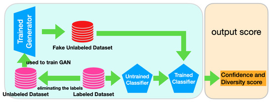By replacing the InceptionNet model with an arbitrary neural network classifier trained on the target dataset, the applicability of the Confidence and Diversity Score on imagery datasets is investigated in [41]. As shown in Figure 6, we built an oracle instance that uses the CDS to run tests on both imagery and tabular data. This oracle uses the end-user dataset to train both a neural network classifier and a GAN model. Then, the GAN’s generator is used to obtain a certain number of synthetic samples that are used as the classifier’s test set. Finally, the CDS is calculated based on the model’s results on this test set. The higher the CDS, the better the quality of the GAN outputs. This oracle can be used with both conditional and non-conditional GANs.