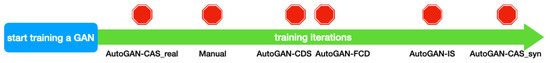 The currently existing metrics for addressing the described problem can be categorized into ‘qualitative evaluation’ and ‘quantitative evaluation’. The former involve human judgment, while the latter are based on different mathematically defined distance functions. A commonly used qualitative method of evaluating when to stop training a GAN is through human visual inspection of the generated samples [1]. This is a very direct and intuitive way of evaluating the quality of images. Nevertheless, it is a very costly and time-consuming task that cannot be applied to tabular data. The visual inspection process was regulated and standardised in a more systematic manner [1,28,29,30]. However, this solution has multiple disadvantages that prevent it from being broadly adopted. Namely, the following issues were found: (i) in some domains (e.g., medical domain), it might be difficult for a human to learn what is realistic or not; (ii) there are limitations regarding the number of images that can be reviewed in a reasonable period of time; (iii) the reviewers’ biases and opinions may be incorporated into the process [30]; and (iv) visual inspection methods are restricted to images and cannot be applied to tabular data.