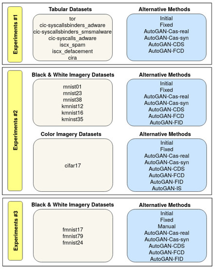 This section presents all the experiments carried out to observe the performance of our proposed AutoGAN algorithm. We begin by providing an overview of our experiments. Then, we describe the datasets used and provide the complete experimental settings. To allow the reproducibility of our results, all the code used in this paper is freely available to the research community at https://github.com/enazari/autoGAN (accessed on 8 February 2023).