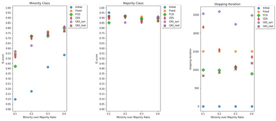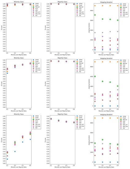 Our goal is to assess the ability of the AutoGAN algorithm (cf. Algorithm 1) in addressing the “when to stop training a GAN” problem. To verify whether a GAN is well-trained (or if the training process is automatically stopped at a good point), we use the GAN as an over-sampling tool under a class imbalance setting. Our assumption is that, if the GAN is conveniently trained, it will provide advantages similar to those of GANs that have been carefully trained with human intervention. This experimental setting allows us to inspect the effectiveness of our proposed solution in both imagery and tabular datasets.