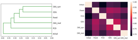 The extracted features from real () and generated () data are viewed as continuous multivariate Gaussian distributions, i.e., and , where and are the means of and and and are the covariance matrices of the two distributions. The parameters of the two underlying distributions are then estimated and the Fréchet distance between the two distributions is calculated. The Fréchet Inception Distance (FID) is used to compare the similarity between two multivariate Gaussian distributions, and is calculated as shown in Equation (6) for and .