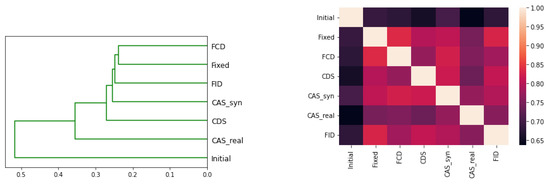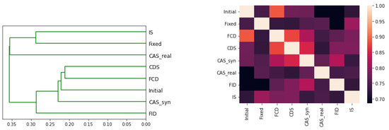 In [46], an extensive study is performed comparing different metrics to the original FID. The authors test several measurements that are based on the InceptionNet model pre-trained on different datasets. Other metrics were also tested using several self-supervised models that were used as feature extractors. Furthermore, the applicability of the FCD score on imagery and tabular data was investigated in [41].