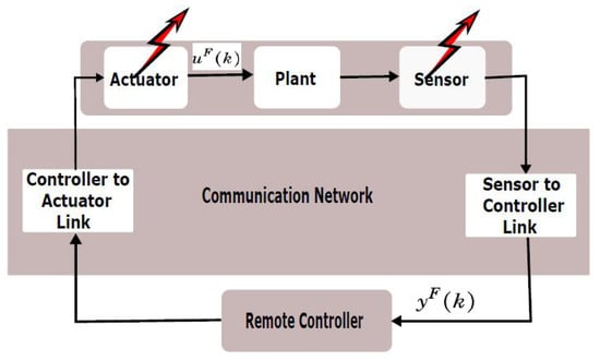 In addition to the communication network impurities, faults may occur in sensors, actuators, and/or process components [12,13,14,15,16,17,18], making the control of networked systems more challenging. These faults can degrade performance, lead to instability, and even cause fatalities [18]. In networked systems, the effects of faults may propagate from one node to other nodes. These propagated effects of faults increase the severity of local node faults [19]. To the authors’ knowledge, in the literature on networked systems, the propagated effects of faults at the network level, along with network’s main uncertainties, must still be addressed. For this purpose, we proposed two new fault models that are more generalized for networked systems. These fault models mathematically represent the magnitude of node-level and network-level faults simultaneously with their propagated effects and the network’s main impurities. Immediate maintenance and repair are not always available, so fault tolerance has received great attention both in academia and practice [20,21]. Motivated by these challenges, researchers have reported Fault-Tolerant Control (FTC) strategies for sensor or actuator faults [17,18,22,23]. In the aforementioned literature, researchers have addressed a single fault or a single type of fault at a time; that is, either multiple sensor faults or multiple actuator faults with either time-delay or packet loss. Assuming the occurrence of a single fault or single type of multiple faults at a time makes the diagnostic and tolerance algorithm very limited in use. In practice, actuator and sensor faults may develop simultaneously due to poor networked environments. To the best of our knowledge, very few researchers have addressed the issue of multiple types of simultaneous fault tolerance in networked systems. Excellent work is done in [20] on double-fault, investigating the guaranteed cost FTC in networked systems using the piecewise delay method. The authors modeled the system with a constant time-delay, which is a conservative approach from a practical point of view. Secondly, the state feedback control requires the information of all states of the system, which are, in practice, very difficult to obtain.