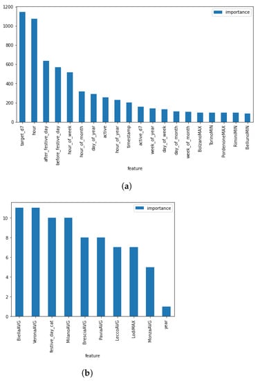 Figure 10 shows the most and least useful features used by the model. It is no surprise that the most important feature is the consumption seven days before the prediction. The second most important is the hour of the day, as the consumption varies a lot during each day. We can notice that many other calendar features have been considered more helpful than the meteorological features, especially the dummies for the day before or after a holiday. Among the least useful features we find at the end of the year, maybe because the training set is only 2-year-long.
