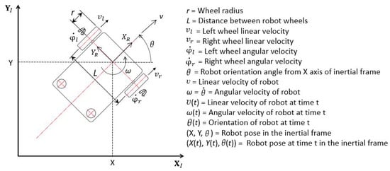 As the pose (X, Y, and ) functions depend on the functions of both the linear and angular velocities at time t, the new pose of the robot in the inertial frame is represented by