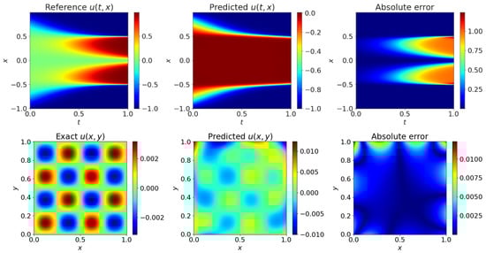 PINNs results for solving Allen–Cahn Equation (The first row) and 2D Poisson’s Equation (The second row).