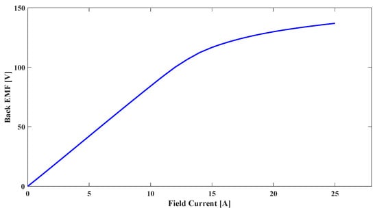 As is discussed above, the rotor of the machine is excited with the induction of harmonics from the armature. If there is no input to the armature winding, then there will be no excitation in the machine. However, magnetization characteristics are drawn by applying different values of current on-field winding and disconnecting the armature winding supply. The characteristics curve between the back EMF and field current of both machines is the same due to same designed parameters, and is given in Figure 8.