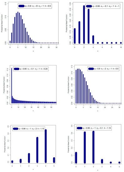 Then, the probability mass function (PMF) of the DGzR-G family corresponding to (2) may be written, thanks to Kemp [] to obtain the new PMF, as Therefore, the PMF can be expressed as