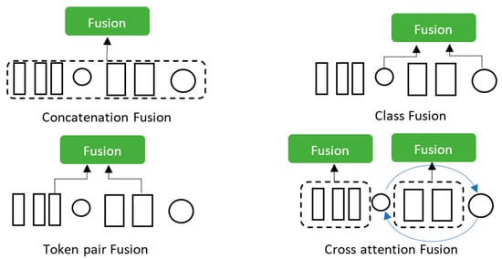 Concatenation fusion—a simple fusion technique based on the concatenation of all tokens from the large and small tokens. This technique does not consider the property of each branch. The extracted features are fused by a self-attention module. Thus, this fusion technique requires quadratic time. The output of the concatenation fusion can be computed as Equation (2).
