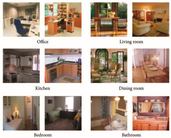 - Quattoni, A.; Torralba, A. Recognizing indoor scenes. In Proceedings of the 2009 IEEE Conference on Computer Vision and Pattern Recognition (CVPR), Miami, FL, USA, 20–25 June 2009; pp. 413–420. [Google Scholar]