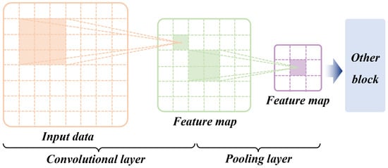 The convolutional neural network (CNN) is a kind of feedforward neural network, which has a powerful ability on extracting features and has good performance in image vision, natural language processing, and so on [43]. The basic architecture of the CNN is mainly composed of two parts, i.e., the convolutional layer and pooling layer, as shown in Figure 1. In essence, the CNN pursues constructing multiple filters to extract useful potential information through a layer-by-layer convolution and pooling of input data.