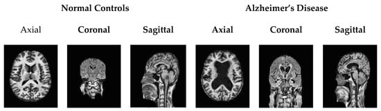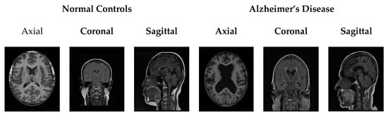 Initially, images for both NC and AD patients were obtained from Chettinad Hospital. Based on the doctor’s contribution, this study took into account around 200 images from real-time public databases. AD is a neurological/neuropathological illness that affects brain structures and produces a variety of cognitive impairments, including increased confusion, loss of knowledge, impairment in memory skills, and difficulties comprehending and performing activities. As a result, there is a need to focus on the brain’s interior areas, such as the ventricle, CC, GM, HC, and WM, when analyzing AD. The suggested system considers all three slices (axial, coronal, and sagittal) of the encephalon/brain to segment all of the above-mentioned areas. Figure 2 shows the raw pictures of all three slices of NC and AD images. Because of anatomical differences, the encephalon’s inner tissues are very small and difficult to distinguish. Because the interior parts of the brain have undefined borders and have relatively low contrast, they must be preprocessed.
