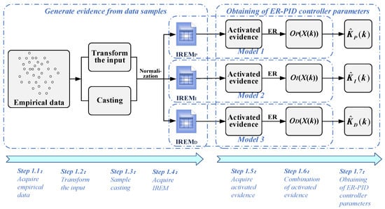 Consequently, we tried to find a method that can solve the above problems well. The evidential reasoning (ER) rule proposed by Yang is a machine-learning-based algorithm that can solve the problem of information loss caused by incomplete data. The ER rule is a strict probabilistic reasoning process that clearly distinguishes the concepts of evidence reliability and evidence importance [19,20]. Additionally, the ER rule also expands the traditional D-S evidence theory and ER algorithm more broadly, offering a new perspective and a more rigorous logical reasoning system [19,20,21]. The ER rule has two advantages: (1) the new control method based on the ER rule is completely data-driven, i.e., it does not need to make any assumptions about the relationships between control variables and PID parameters; (2) compared with the neural network, the physical meanings of parameters in the ER are clear and easy to understand, and these parameters can be adjusted according to their meanings.