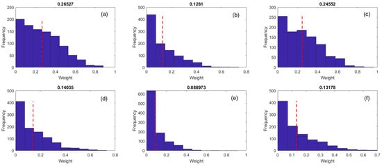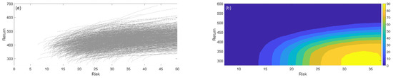Equation (16) allows the whole process to be implemented with no certain complexity. The semi-variance criterion has been increasingly utilized in studies on descending risk criteria. Grootveld and Hallerbach [53] examined the similarities and dissimilarities between the use of variance or a declining risk criterion, both theoretically and empirically. According to their research, only a small number of the large family of descending risk criteria have superior theoretical characteristics in the risk–return framework than the variance criterion. They investigated the differences between a selection of US asset allocation portfolios on the basis of risk assessment using variance and descending risk metrics. They also discovered that using the downside risk rather than the average variance in the selection process led to slightly higher bond allocation. They also investigated how sampling error can affect expected returns and how risk criteria can affect portfolio composition by performing a simulation, which showed considerable discrepancies in the estimation accuracy, highlighting the need for additional research. Fama [54] and Mandelbrot [55] identified the non-Gaussian nature and skewness of the return distribution. According to the findings of their studies, the return distribution is more extended and skewed than the normal distribution. Quirk and Saposnik [56] demonstrated the significance and superiority of the semi-variance criterion over the conventional variance criterion. Mao [57] demonstrated that investors are more concerned with the unfavorable level of risk as a function of the probability distribution of rate of return than with other deviations. This indicates the behavioral aspect of investor risk aversion, and demonstrates that only the semi-variance criterion should be employed to measure adverse risk.