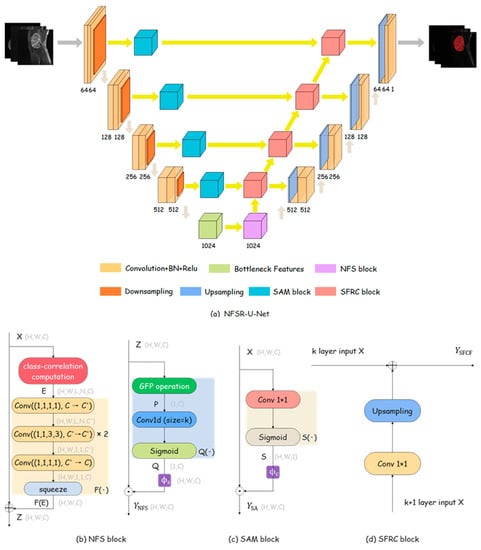 - The NFSR-U-Net learns highly representative and hierarchical semantic features by rescaling high-level features in the middle and late stages using the spatial attention mechanism. The effectiveness of extracting spatial features of various depths by using the residual structure is also used to enhance the statistical information of textures and boundaries in MRI images. It bridges the semantic gap of skip connections in U-Net.