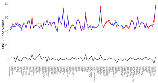 The response variable corresponds to the quality of urban life index (QoL) interacting with 19 independent variables. The data are extracted from various sources of information corresponding to reports from the Library of the National Congress of the Republic, Statistics Institute, Urban Development Minister, Center for Studies and Analysis of Crime and the results of the CASEN survey, all published in 2022 but related to characteristics of 2021 due to a delay in report publishing; thus, the quality of life and variables for each town correspond to the same period of time. The variables considered for the analysis were the quality of life index (response variable), population density, poverty, municipal common fund, own incomes, green areas, green area per inhabitant, % of students with more than 450 points on PDT (education), health centers, inhabitants per health center, domestic violence, domestic violence per 100,000 inhabitants, overcrowding and other variables related to municipal expenses corresponding to municipal activities, self-management, cultural programs, leisure programs, social programs and community services.
