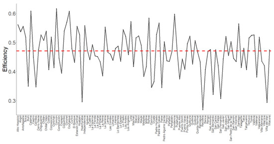 With the variables chosen, the efficiency model was developed by testing Cobb–Douglas and trans-logarithmic functional forms through an LR test. As previously mentioned, the efficiency was developed considering that quality of life is the output of the functional or production form, while the features chosen for the econometric model (explanatory variables) were considered inputs for the production function.