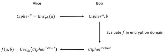 - Damga, I.; Geisler, M.; Krøigaard, M. Homomorphic encryption and secure comparison. IJACT 2008, 1, 22–31. [Google Scholar] [CrossRef]