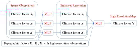 In order to solve this issue, we proposed a hybrid of MLP to couple low-resolution climate observations with high-resolution topographic data and then generate a high-resolution climate map (see Figure 1).