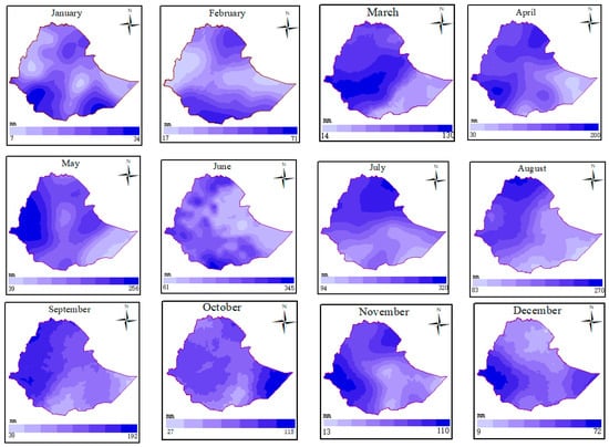 High-resolution maps of the mean monthly precipitation in Ethiopia during 1990–2020 generated using the hybrid of MLPs.