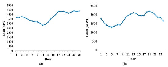 Daily summer and winter loads in Basra for (a) the first day of December and (b) the first day of August, respectively.