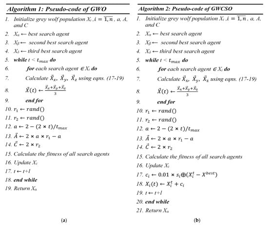 The level of grey is governed by the fitness function. It turns out that the alpha wolf, the beta wolf, and the delta wolf are the top three fitness options. The key-group designates these three solutions. The alpha wolf is responsible for the pack’s welfare. In order to develop GWO, researchers have mathematically modeled the social structure and hunting strategies of grey wolves. The following are the proposed mathematical models for social hierarchy, encircling, hunting, and attacking prey [64,65]: