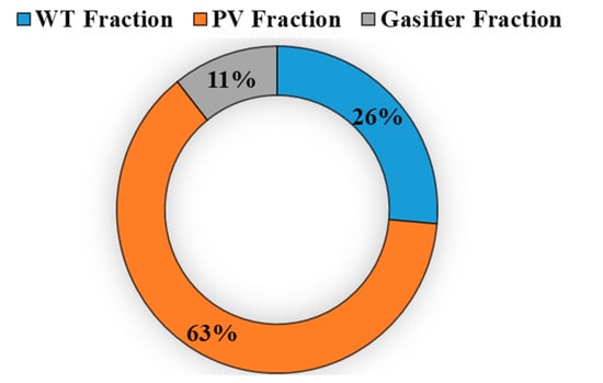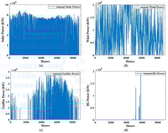 Currently, fossil fuels are used to generate the majority of the world’s electricity. Fast depletion rates and severe environmental impacts caused by the combustion process are the main drawbacks of these resources. Since fossil fuels are being consumed quickly around the world, there is an urgent need to find other sources of energy to meet the current demand. RESs can be derived from a variety of sources, including solar, wind, tidal, biomass, other alternative non-polluting and sustainable energy sources. Since they are non-polluting and long-lasting, RESs are poised to become the dominant form of electricity production in the near future [1,2,3,4,5,6]. Sizing these resources is key to making their systems economical and reliable. MGs are under- or oversized to satisfy electricity demands. An oversized systems will incur high running expenses and produce excess energy. In contrast, an inadequately scaled MG system will be unable to deliver power to the necessary demands. To fully reap the advantages of a RES-based MG, optimal size and energy management are needed. RESs have a considerably larger chance of succeeding in cities where a huge population still exceeds the electricity generating capacity of a centralized grid [7].
