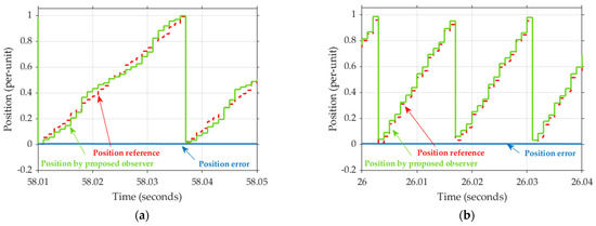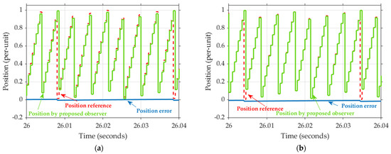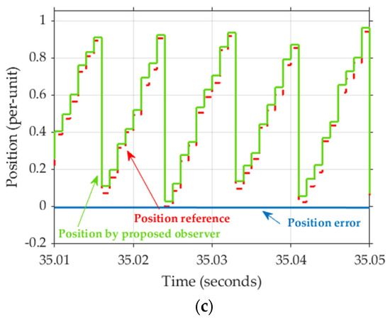 Based on simulations and experimental results, the proposed observer in this study is consistent with other studies that used a sliding mode observer [31,33,33] and machine-learning-based observers [38,39]. The proposed observer can accurately estimate position. Table 5 shows a comparison of the proposed observer’s performance with those in previous studies. As can be seen, the proposed observer performs better than those of previous studies since its position error is lower than in previous studies.