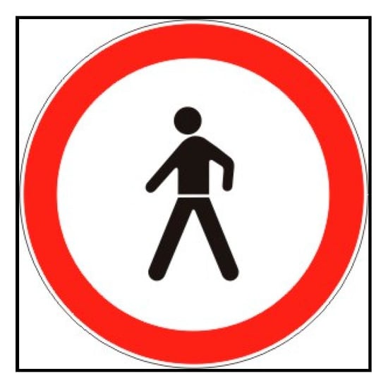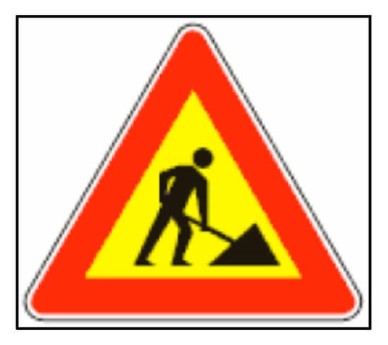 The chosen colors of the stimuli used in the experiment are based on the colors used for traffic signals. For example, red, yellow and green colors are used on traffic lights. All traffic warning signs (e.g., Figure 2) (and some signs of explicit orders) are also lined with red colors.