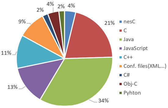 Some of the modeling languages for IoT support four different programming languages at the same time. These are (1) ThingML [22,84,85,86] with its support for C, C++, Java, and JavaScript; (2) Genesis [100,101] with its support for C, C++, Java, and JavaScript; (3) Midgar [108,109] with its support for C, Java, C#, and Obj-C; (4) Vorto [117] with its support for C, C++, Java, and Python; and (5) ENACT DevOps [119] with its support for C, C++, Java, and JavaScript.