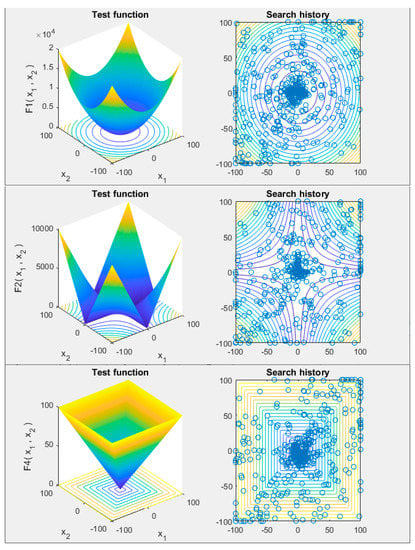 The exploitation properties of an algorithm can be evaluated through the unimodal functions (F1, F2, F4, F5, and F7), which have only one global optimum. The exploration properties of an algorithm as well as its ability to avoid local optima are tested on multimodal functions (F9–F11).