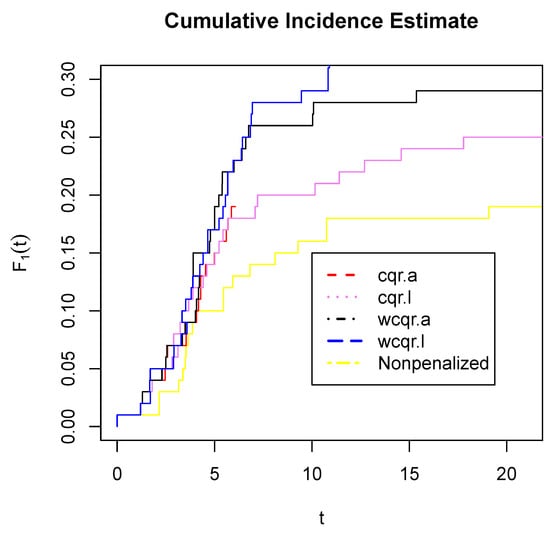 in [12]. Analogue to the definition of quantile, we define the conditional quantile as , where is the CIF for cause k; for more details, refer to [5]. For , consider to be modeled as