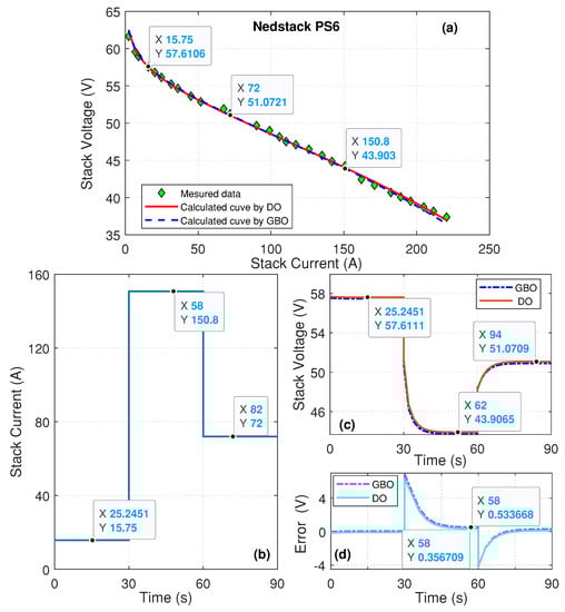 - The experimentation of two commercialized PEMFCs (EMFC 250 W, and NedStack PS6) has confirmed the superiority of the proposed DO in terms of stability, convergence speed, and absolute accuracy.