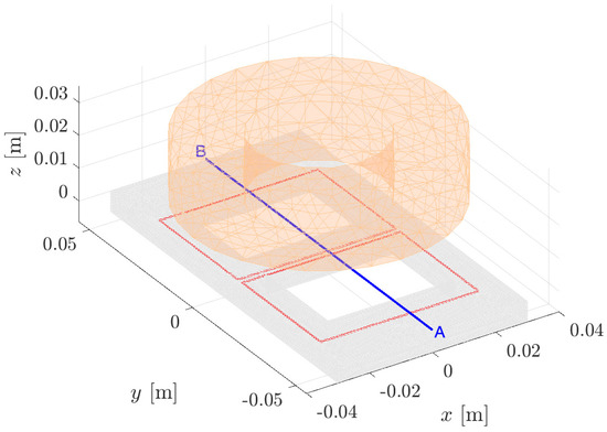 where is the face-to-edge incidence matrix related to . Terms related to virtual loops and are computed by taking the line integrals of the virtual magnetic vector potential and the virtual magnetic field (14) along the primal edges and dual edges at the interface, respectively. and are computed from the source current density by a numerical quadrature of Biot–Savart’s law. The reduced MMFs are expressed as a function of magnetic potentials on dual nodes as: