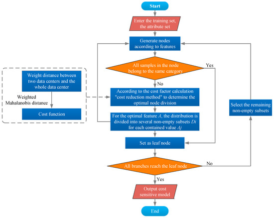 Cost-sensitive refers to the huge loss caused by misclassifying a certain category A into B in the classification problem. The solution is to construct a cost function [49,50,51]. The specific steps are as follows: