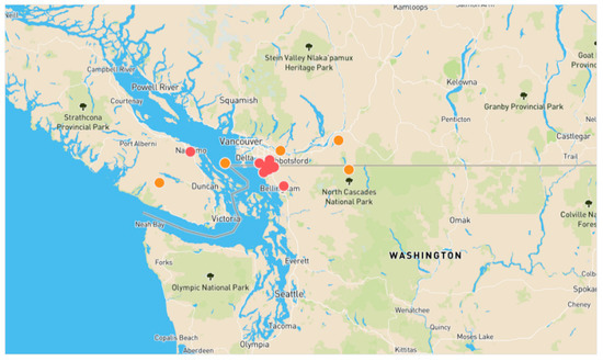 - Washington State Department of Agriculture. Asian Giant Hornet Public Dashboard. 2020. Available online: https://agrwa.gov/departments/insects-pests-and-weeds/insects/hornets/data (accessed on 5 November 2020).