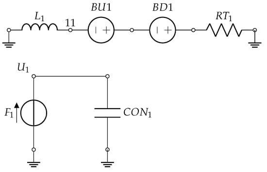 The Network Simulation Method (NSM) [50,51,52] entails breaking down the investigated system into electrical circuits with identical governing equations. Electrical variables correspond to physical variables in the original system.